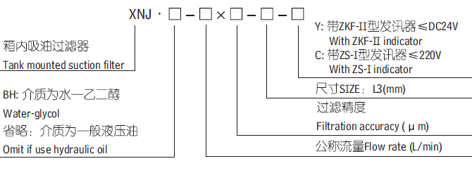 新型箱內吸油過濾器XNJ-100*80C/Y具有下列特點:1)安裝連接方便,僅通過安裝法蘭固定在油箱蓋板上,濾芯直接插入油箱,從而簡化了油路,節省空間。使系統布置更為緊湊;2)清洗或更換濾芯時,只要擰開安裝法蘭上的螺釘、拉起安裝法蘭,即可清洗或更換。3)帶有濾芯堵塞發訊裝置,當濾芯被堵塞至-0.018MPa時,會發出開關信號。4)帶有旁通閥,當濾芯被堵塞發訊后,不能及時更換濾芯,當壓力到達-0.02MPa時,旁通閥自動打開,以保護油泵正常工作。